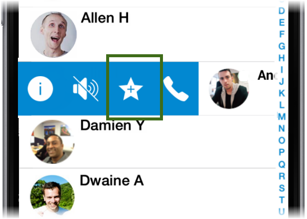 Once you've located the contact, swipe right to bring up the swipe controls and press the star icon. |